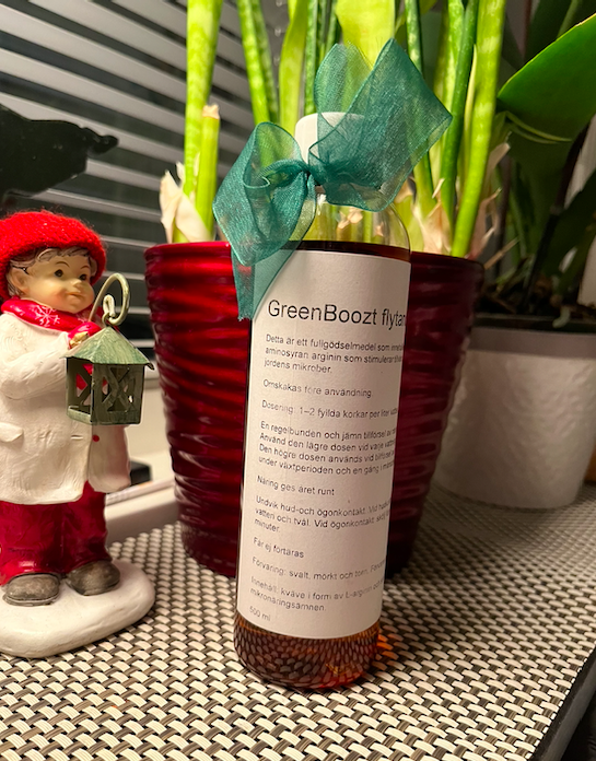 Om man skulle jämföra med ett annat växttillskottsmedel så växer växten betydligt snabbare och blir större med våran produkt jämfört med dem andra näringstillskotten. Vi använder oss av ett ämne som heter arginin som fungerar bäst för just växten. Det är även miljövänligt och skapar inte försurning eller liknade då ämnena stannar runt växten.